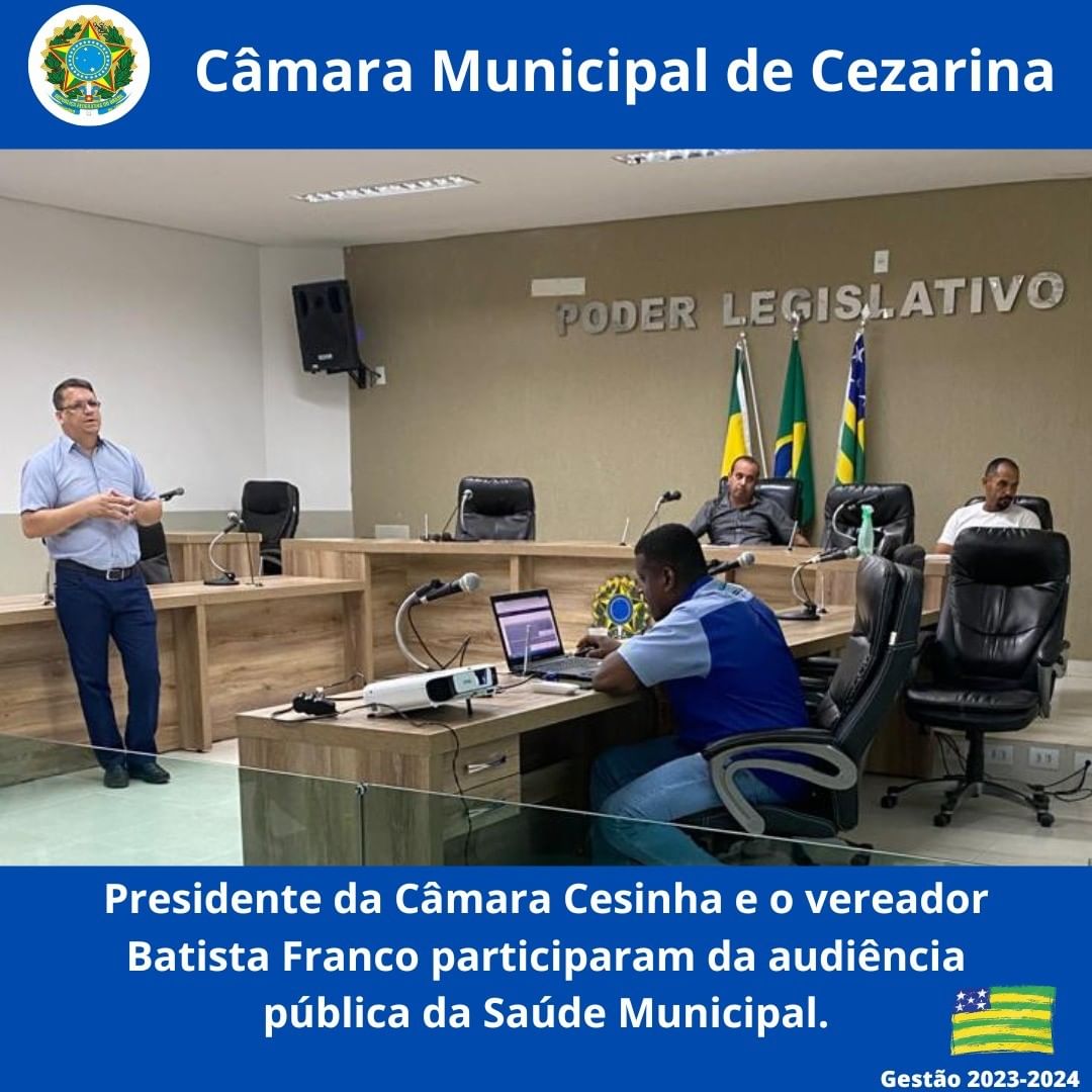O Presidente da Câmara Municipal o vereador Cezar Luiz Moreira e o vereador Batista Franco participaram nesta quinta-feira (09) da Audiência Pública da Secretaria Municipal de Saúde de Cezarina.